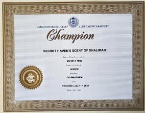 Ch. Secret Haven's Shalimar - Shalimar